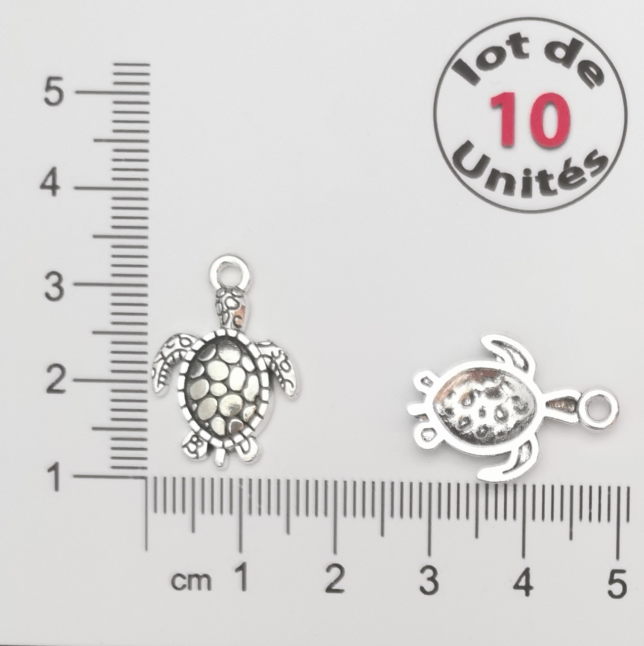 Apportez une touche marine et symbolique à vos créations avec ces breloques en forme de tortue. Leur design détaillé met en valeur la carapace texturée et les nageoires pour un rendu à la fois réaliste et élégant idéal pour la réalisation de bijoux DIY comme des colliers, bracelets ou boucles d’oreilles.