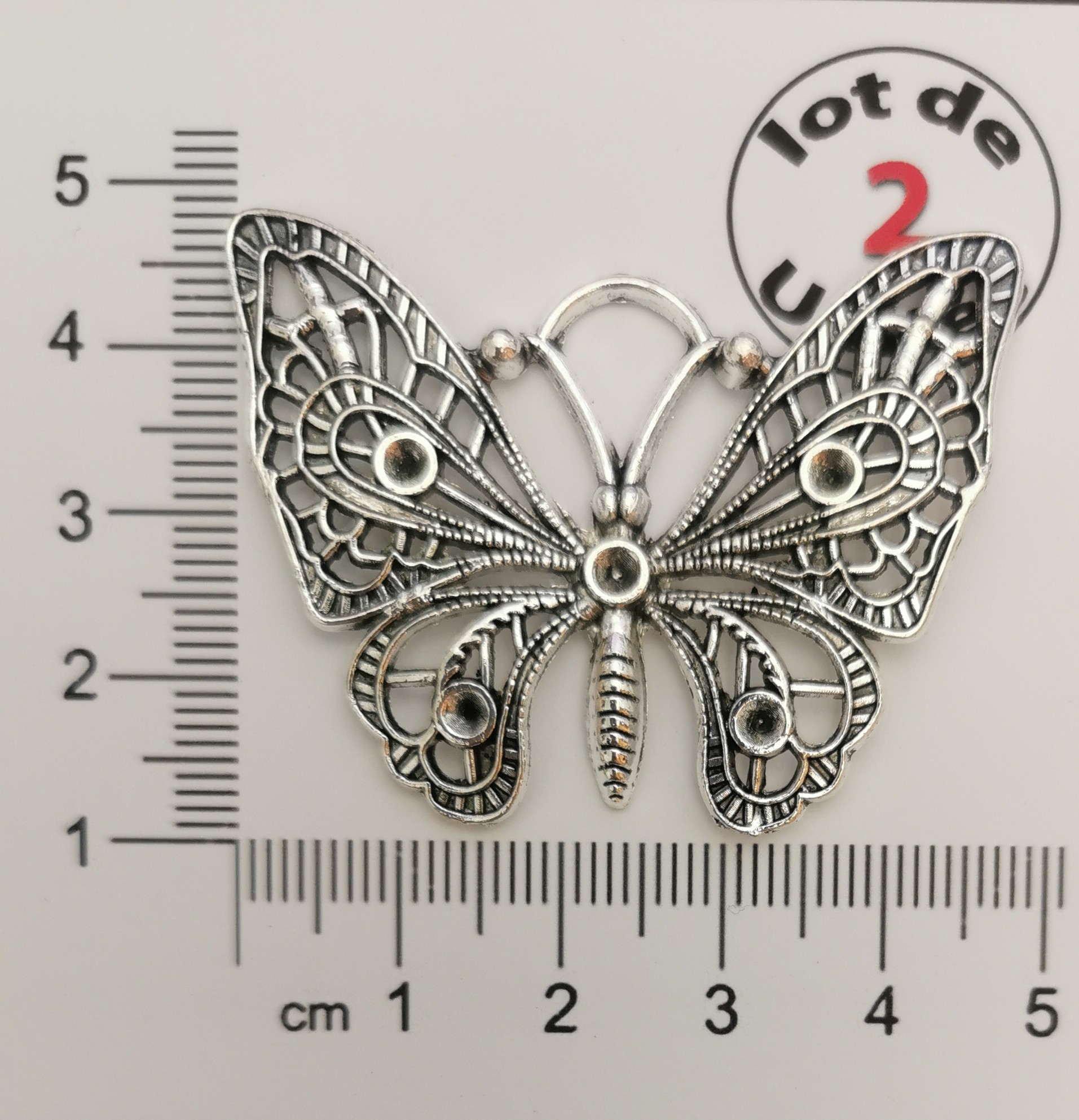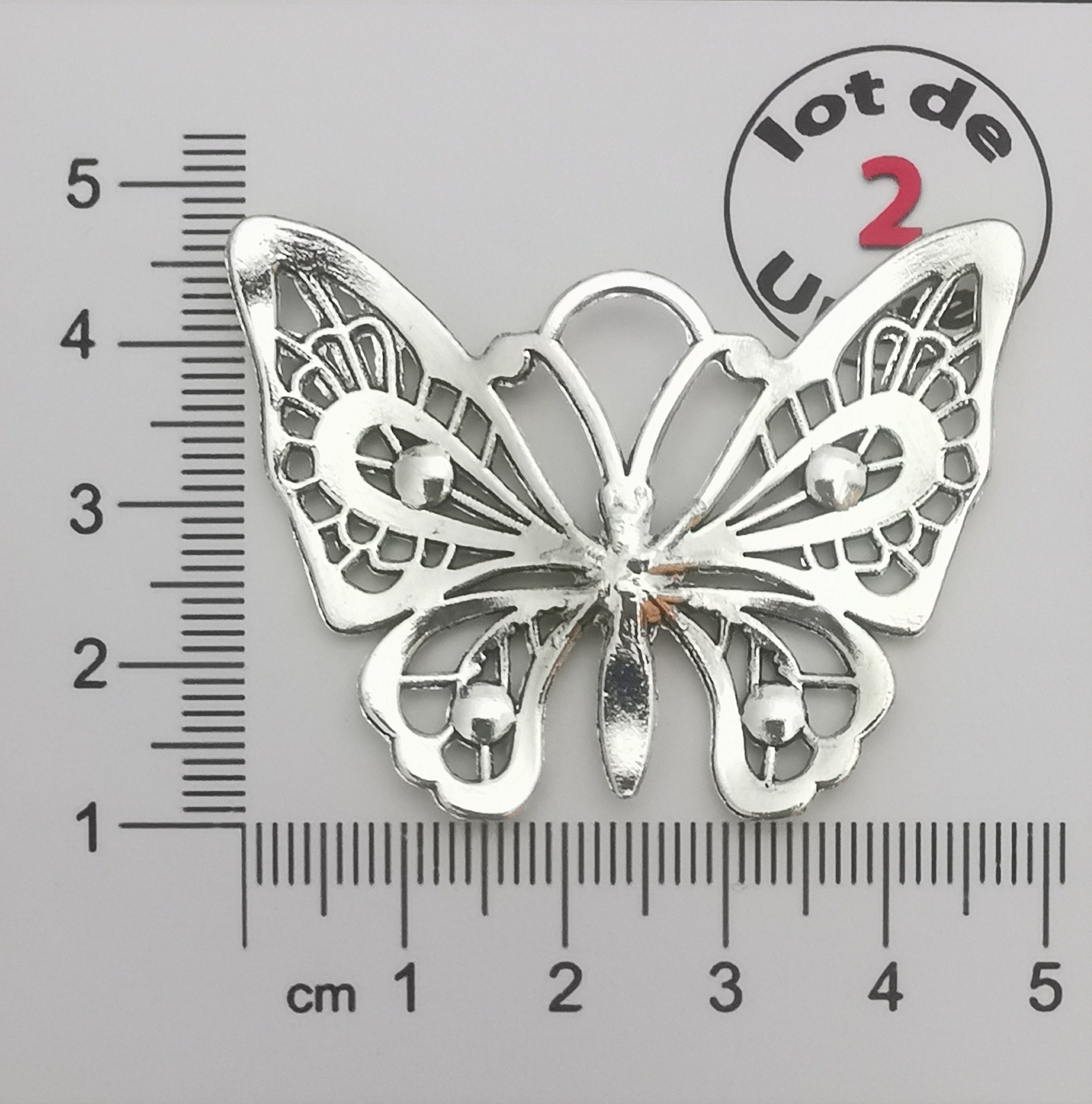Apportez une touche élégante et raffinée à vos créations avec ces grandes breloques en forme de papillon. Leur design ajouré très détaillé met en valeur les ailes avec des motifs travaillés et des reliefs décoratifs pour un rendu sophistiqué et original idéal pour la réalisation de bijoux DIY comme des colliers ou des pièces centrales.