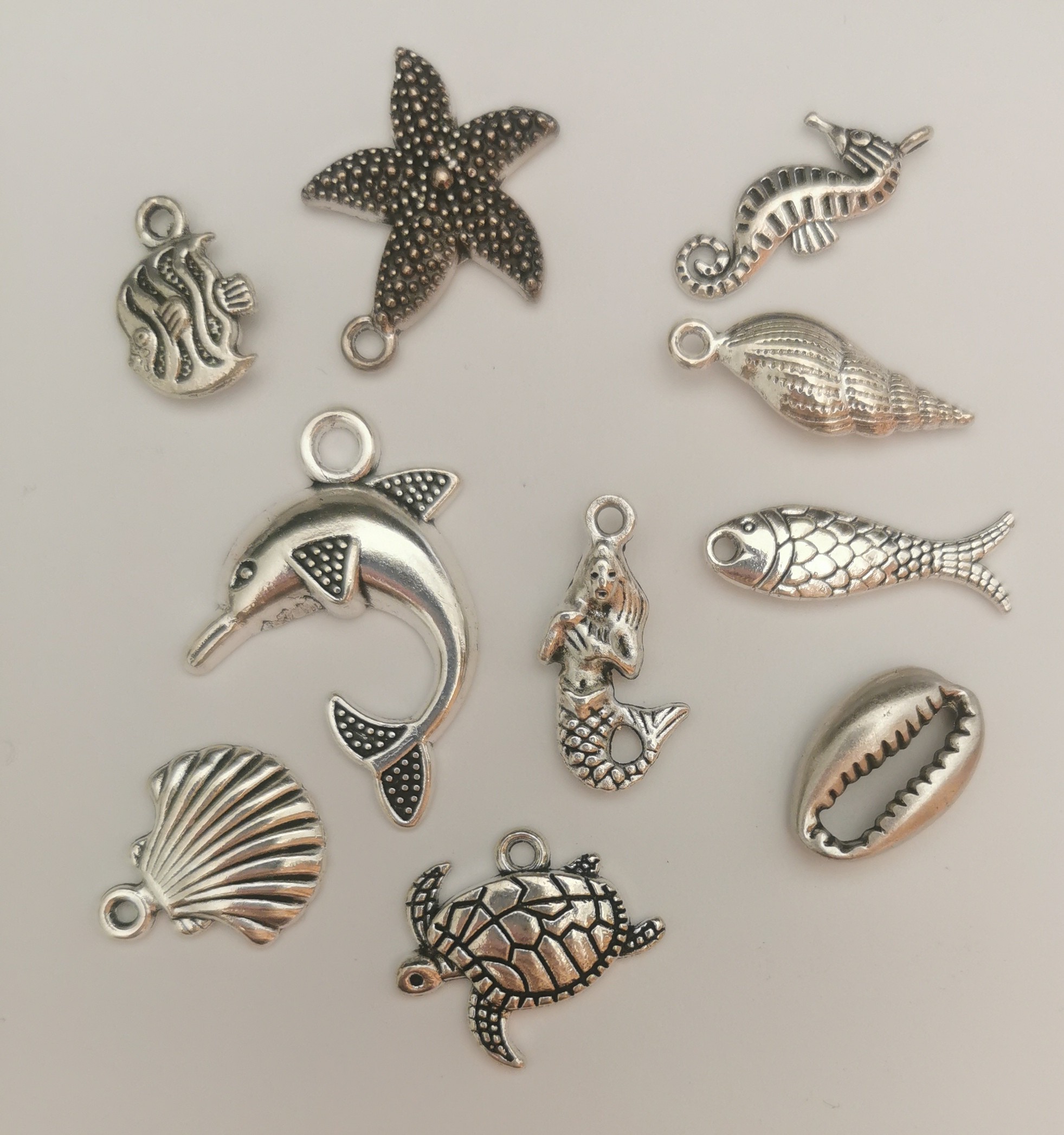 Créez des bijoux inspirés de l’océan avec ce lot de breloques au thème marin varié. Ce mélange comprend différents motifs emblématiques de la mer : dauphin, étoile de mer, hippocampe, coquillage, poisson, tortue, sirène et autres éléments marins.